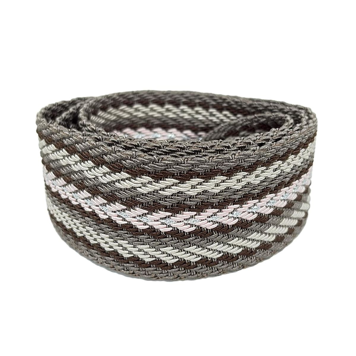 アクセソワ ドゥ マドモワゼル ショルダーストラップ - カーキ×ダークブラウン×マルチ ストライプ コットン レザー