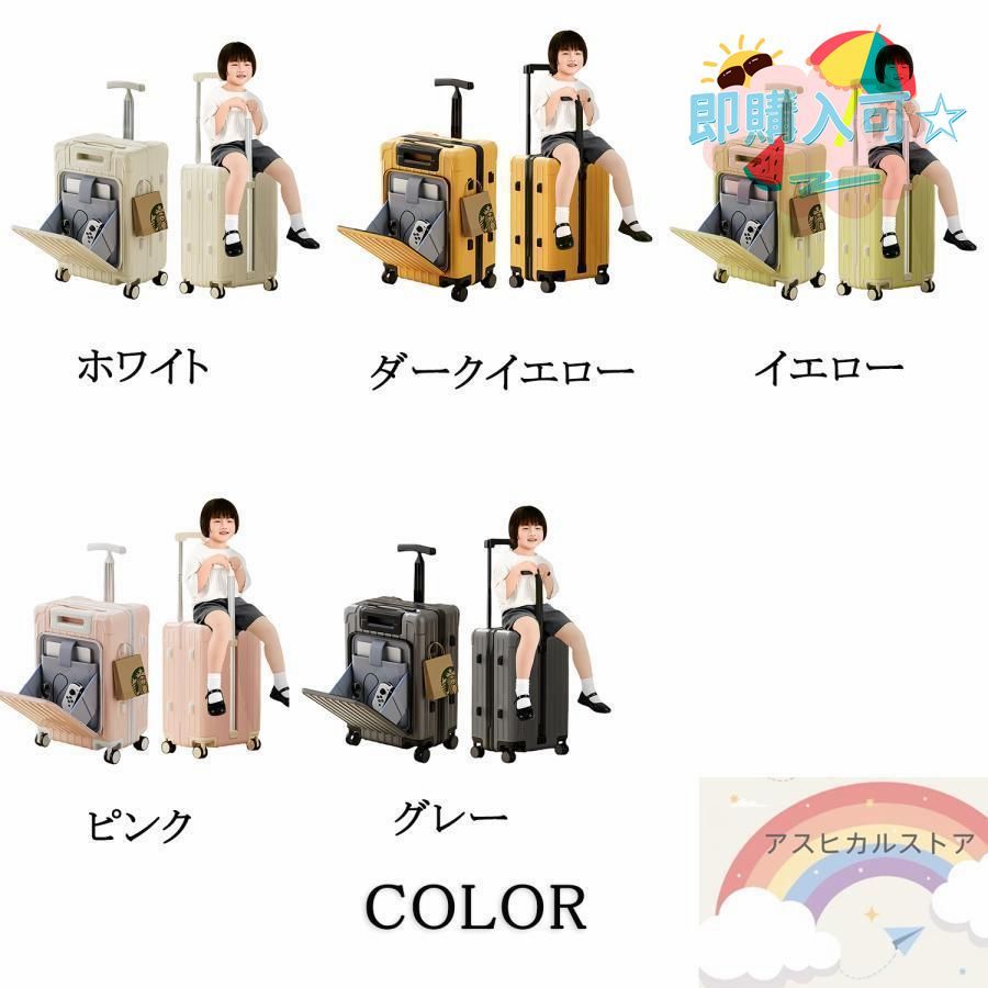 子供が乗れるスーツケース フック付き ネットポケット付き 携帯電話ホルダー付き 座れる キャリーケース 片開き 耐衝撃 軽量 かわいい