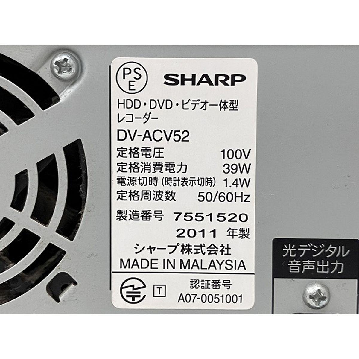 SHARP DV-ACV 52 HDD DVD ビデオ 一体型 レコーダー 2011年製 シャープ 訳有