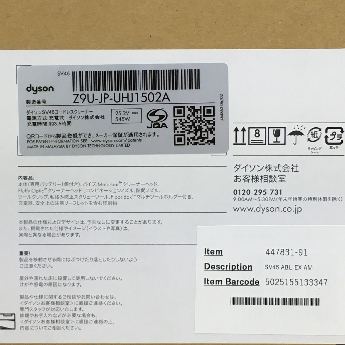 こちらは「未使用 dyson ダイソン SV46 ABL EX V12 Detect Slim Absolute 充電式コードレスクリーナー 家電 未開封 」でございます。