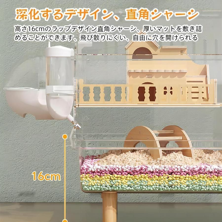 ハムスターケージ透明アクリル製ハムスターケージ2階建てハムスターハウス飼育ケージ小動物ケージハムスターケージ広い空間持ち運びS&L組