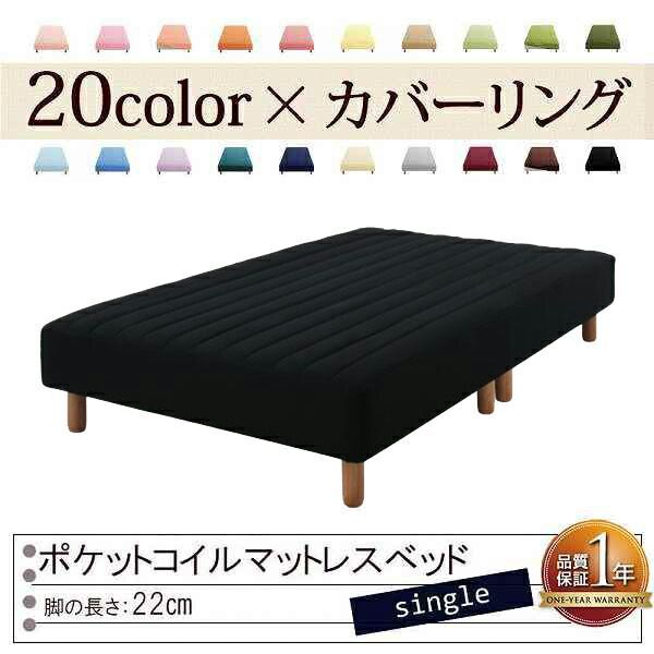 色 寝心地が選べる! カバーリングポケットコイルマットレスベッド 脚22 cm シングル サイレントブラック