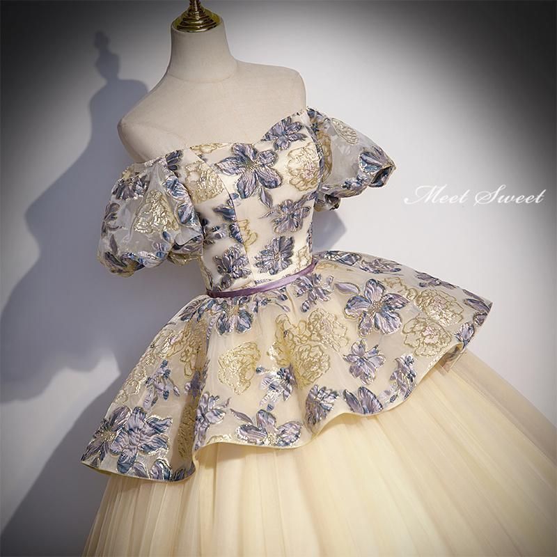 ドレス 編み上げ シャンパン 花柄 ステージドレス ロングドレス 結婚式 二次会 発表会 演奏会 ウェディングドレス ウエディングドレ