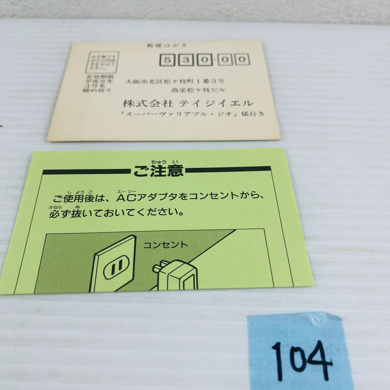 104 SFC スーパーヴァリアブル ジオ Super V G スーパーファミコン ソフト ハガキ き TGL 格闘ゲーム