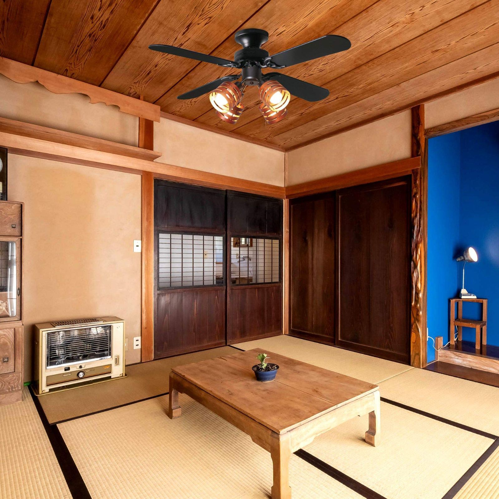 冷暖房効果 天井ファン 日本語説明書付き リビングルーム 天井照明 風量調節 省エネ ブラウン LED対応 リモコン式 リバーシブル 照明 シーリングファンライト Uncle Parrot