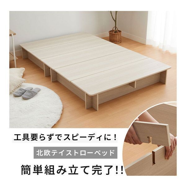 工具不要で組立簡単 ネジなしフロアベッド セミダブル オーク 組立品