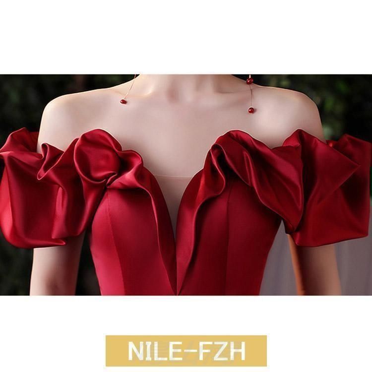 イブニングドレス オフショルダー サテンドレス ワイン赤 ゲストドレス 結婚式ドレス 二次会ドレス ワインレッド ロングドレス 発表会ドレWP数量 価格926