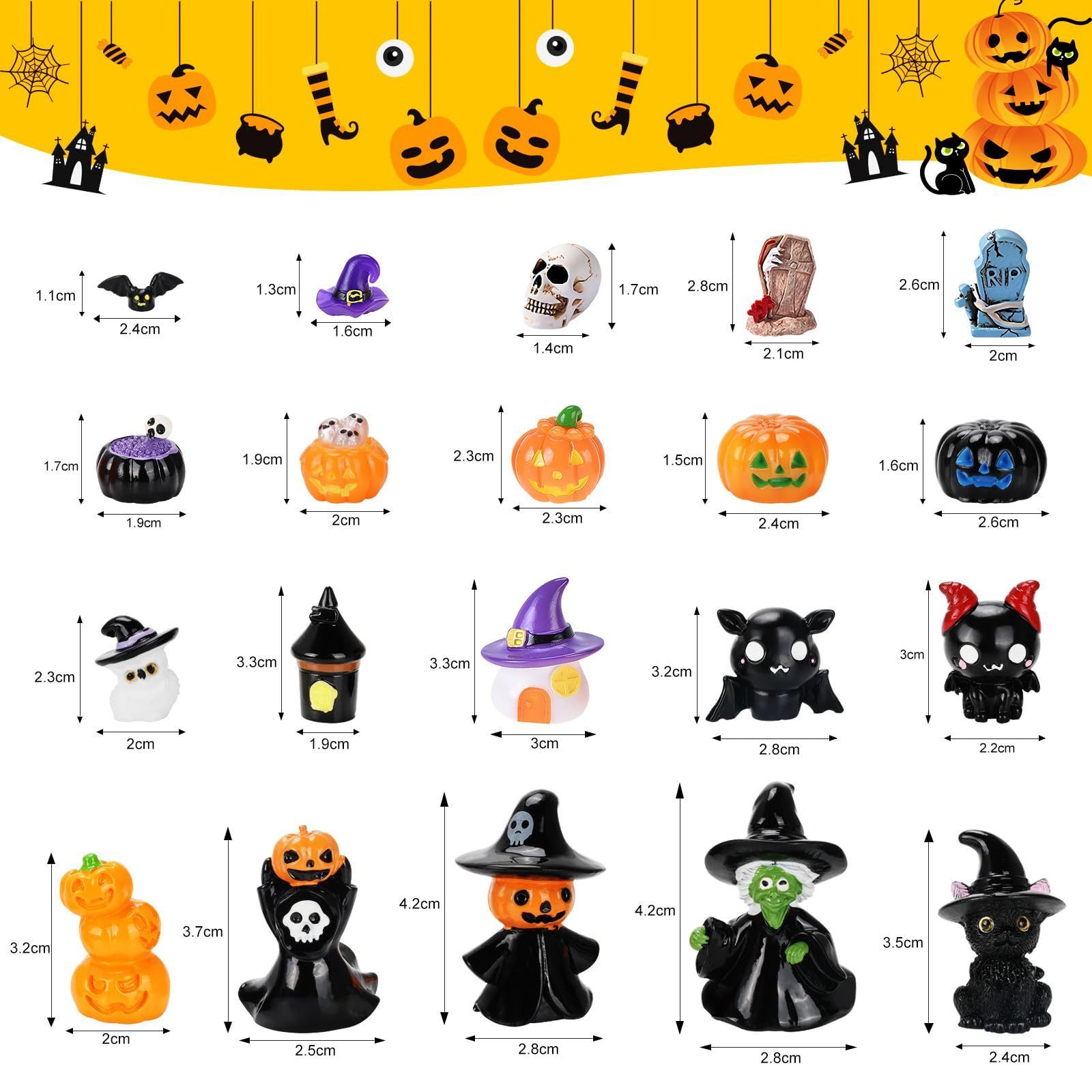 【可愛いハロウィンミニチュア置物】さまざまなハロウィンミニチュア置物が20個含まれており、可愛くて装飾のニーズを満たすのに十分で、部屋がハロウィンの雰囲気でたっぷりになります
