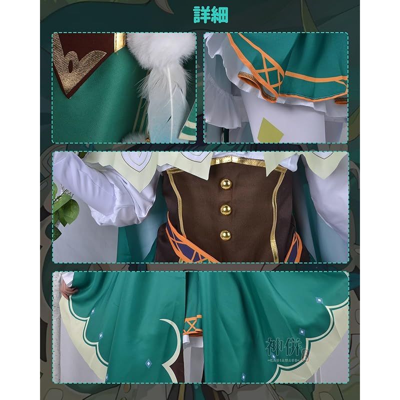 ※【セット内容】:「ウィッグ」+「トップス」+「スカート」+「マント」+「ソックス」+「ベルト」+「帽子」+「腰飾り」+「神の目」+「蝶タイ」。ポリエステルな生地を使用し,質感や細部も丁寧につくられておりますので,本格的な着こなしが可能です。