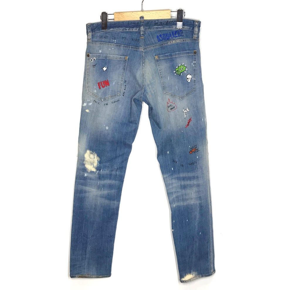 ディースクエアード デニムパンツ SLIM JEAN BABY PRINT WASH ペイントウォッシュ S 30342 ブルー サイズ 46 107