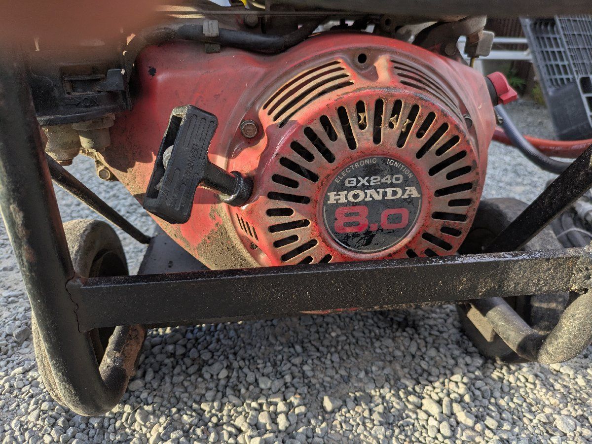 ●蔵王産業エンジン高圧洗浄機XRA4G30JSXです。(ラベル印字消えてわかりませんが、型式検索すると蔵王産業のようです。)現在写真のガンで圧力メーターで10MPAぐらいでてます。買取時はもっと上がってた印象ありましたが、当方圧力に関してメンテナンスできないため現状でご了承いただける方のみ入札をお願い致します。エンジン起動は比較的良いかと思います。