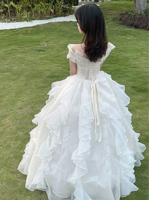 軽やかなフリルが映えるガーデン風プリンセスウェディングドレス