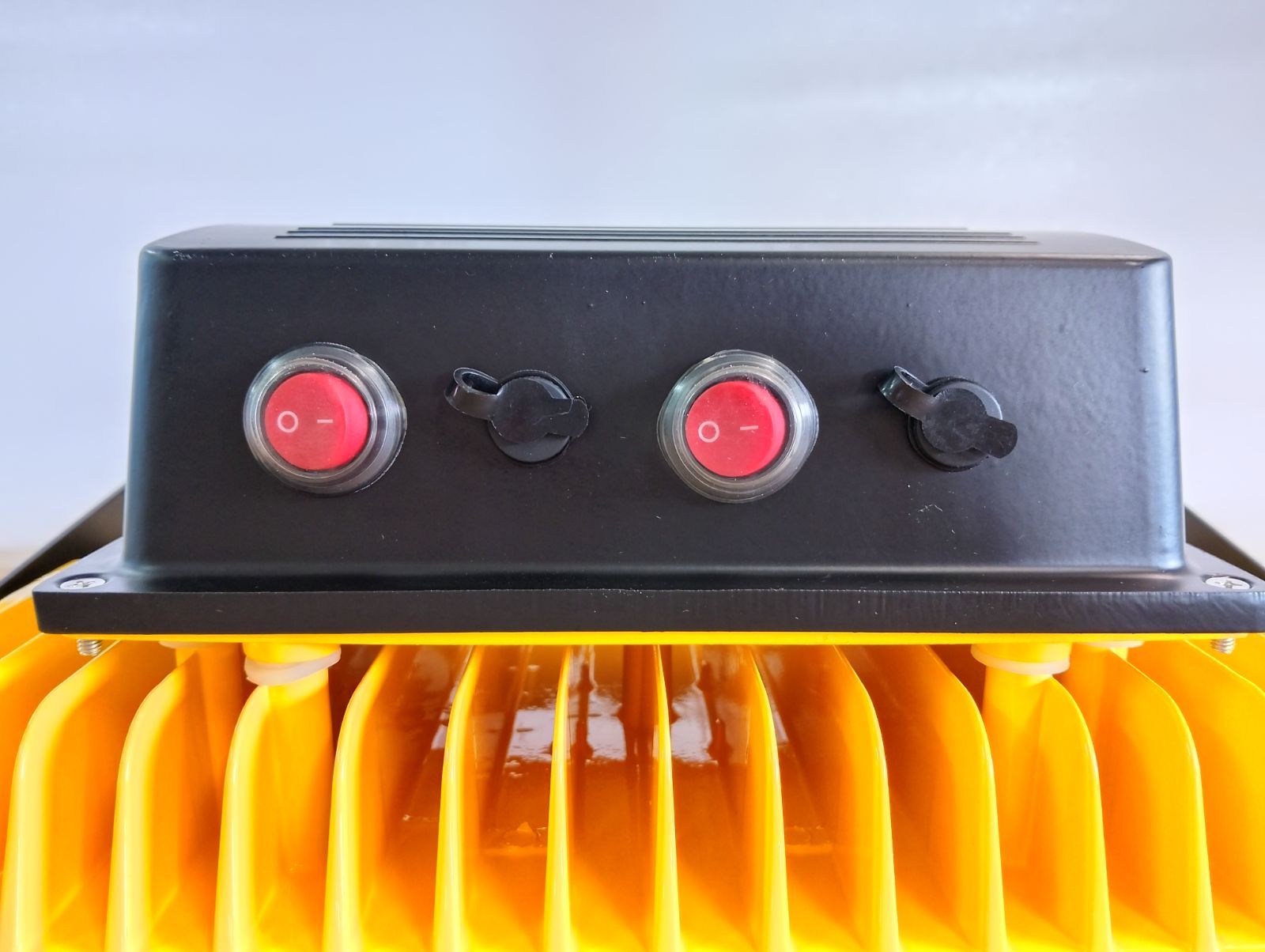 ・ 1台で50Wと100Wの2役をこなす明るさ切り替え機能を搭載しています