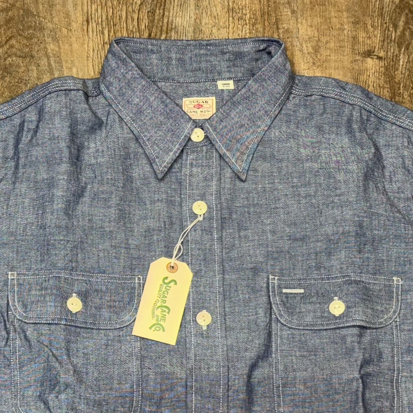 シュガーケーン ブルーシャンブレー ワークシャツ アメカジ SC 27850 421 ネイビー