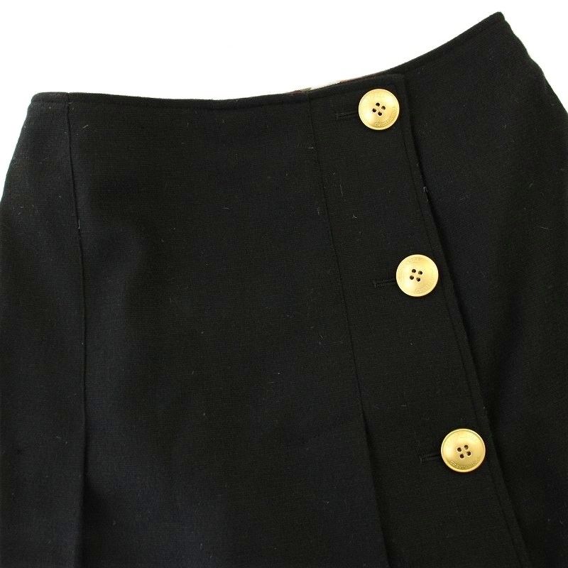 ブルーレーベルクレストブリッジ BLUE LABEL ラップスカート ウール混 ひざ丈 金ボタン 36 黒 ブラック 55 S 36-238-09 G