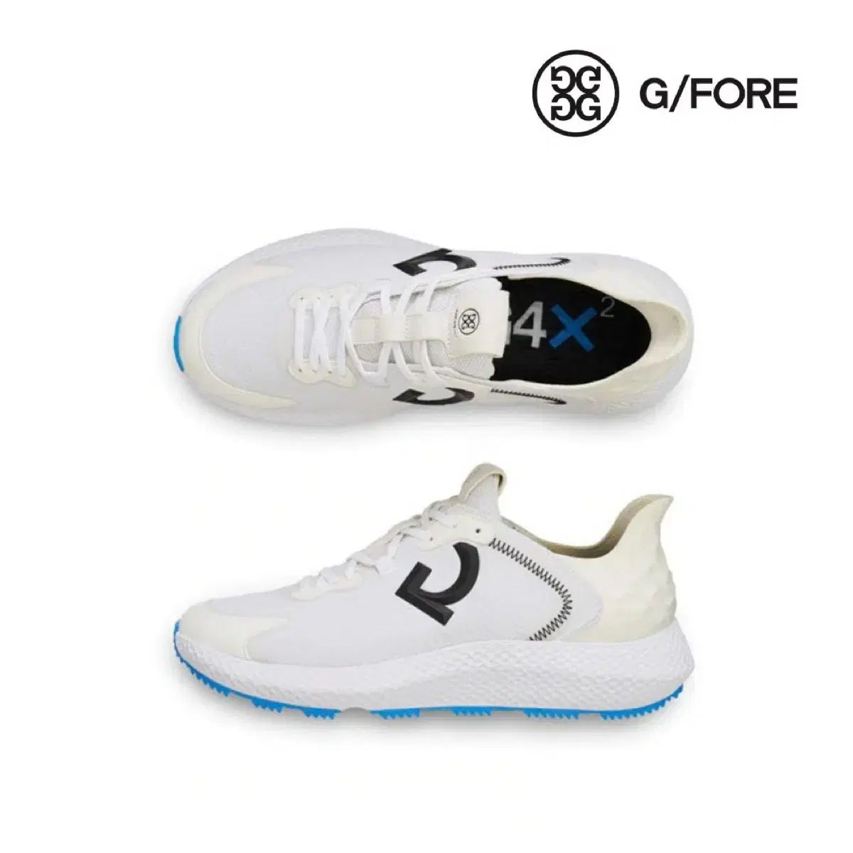新品 G FORE(ジーフォア) メンズ ゴルフシューズ MG4X2 モデルです。白 バターンに黒 ロゴで POINT ポイントを施した エレガントな デザインです。100% 店舗で購入した 商品であり 偽物の場合200%補償いたします サイズ 10 サイズ 270 です エンボス クッション ベッドで 長時間履いても 足が楽です