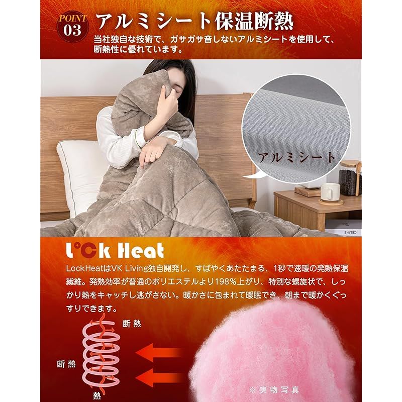 ??【シンサレート全面使用】シンサレートは軽くて暖かい、究極の暖かさと快適性を兼ね備えた素材です。同じ厚さの羽毛と比較した場合、約2倍暖かい。VK LIVINGは日本の環境保護イニシアチブに賛同し、2025年からラグジュアリーブランドも採用するEC型3M シンサレート 保温素材を導入しました。商品1点のご購入につき、約170グラムのCO?排出量削減に貢献します。ぬくもりとエコの調和を実現します。ご注意:2種類のシンサレートがランダムで発送されますが、保温効果は同じで、ご安心ください。