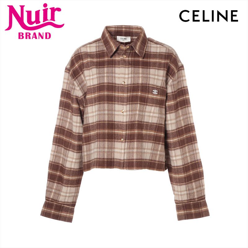 CELINE セリーヌ 長袖シャツ カシミア フランネル シャツ トリオンフ 刺繍 ロゴ