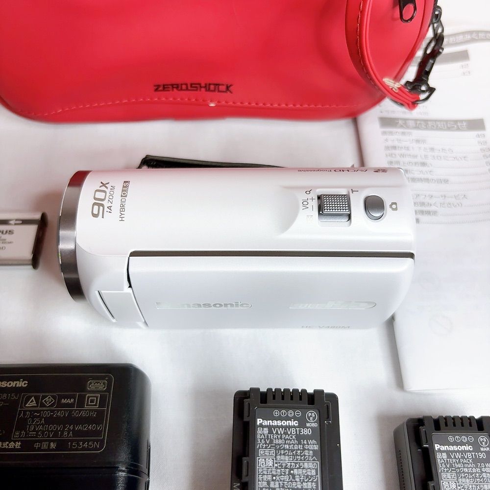 ケース付き Panasonic パナソニック HDビデオカメラ V 480 MS 高倍率90倍ズーム ホワイト HC-V MS-W