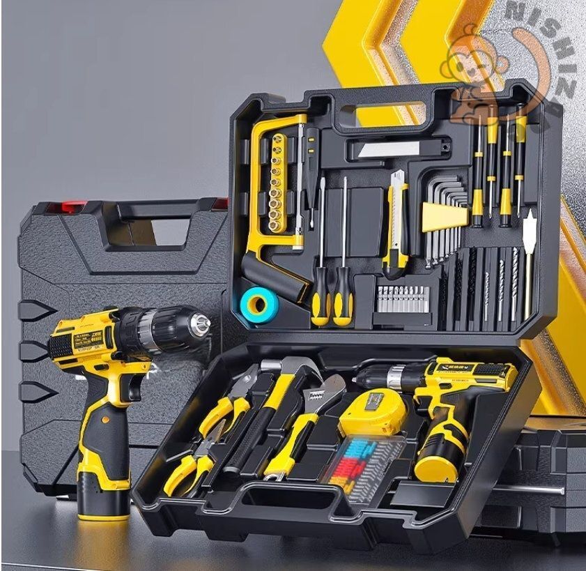 家庭用工具箱セット電動ドライバーリチウム電池付き ねじ回し五金修理ツール