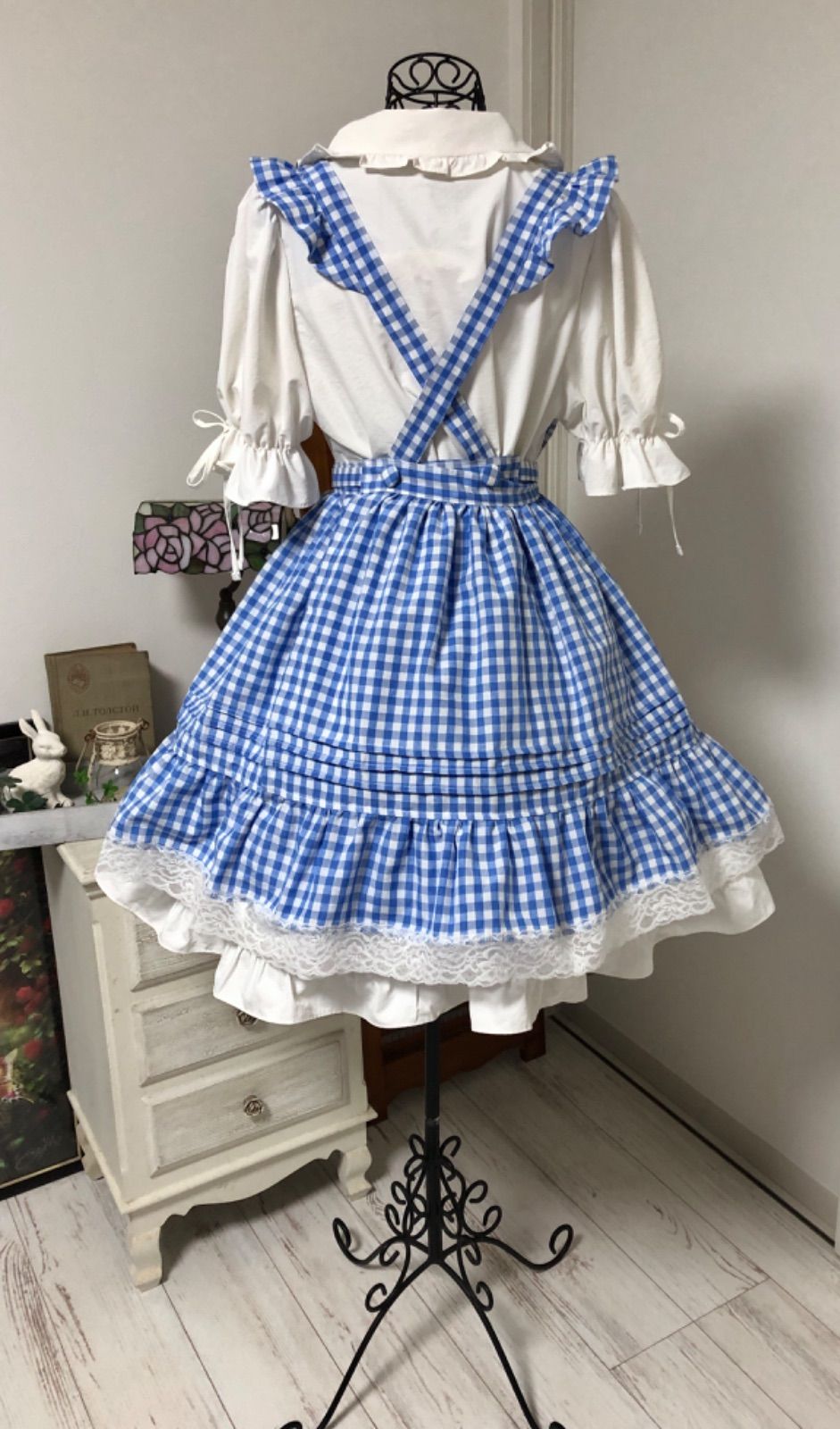 レースたっぷり、ブルーのギンガムチェック。